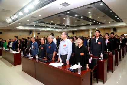 全体代表奏唱国歌 郑健摄