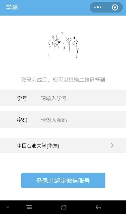 输入学号和密码(默认密码:学号后六位),登陆并绑定微信账号,即可进行扫描二维码签到。
