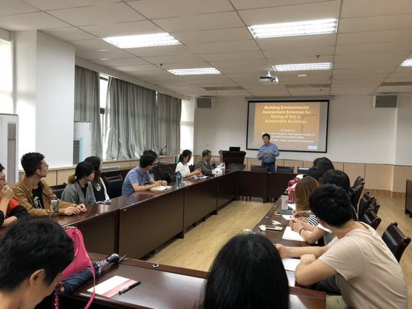 Chuck Wah Francis YU教授有30多年的从事室内空气品质和建筑环境相关研究的工作经验。Yu教授以可持续性建筑为中心,对比研究了欧洲、美国、韩国、香港等不同地区对建筑环境的评价体系,分析了影响建筑可持续化的关键因素,提出了自己对绿色建筑可持续发展的深入理解。YU教授宽广的国际视野、丰富的研究成果、严谨的治学精神,给公司师生留下了深刻印象,与会师生受益匪浅。