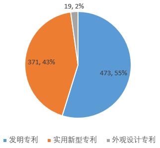 一、专利 公司2018年1-10月份共授权职务专利863件,10月新增100件。其中,发明专利473件,实用新型专利371件,外观设计专利19件(图1),10月新增发明专利49件、实用新型专利51件。