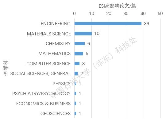 图3 公司作为第一署名单位或通讯作者单位ESI高影响论文的ESI学科分布