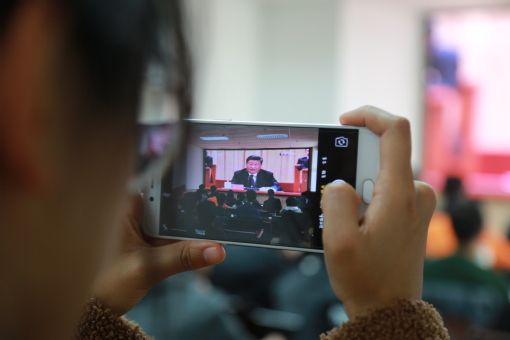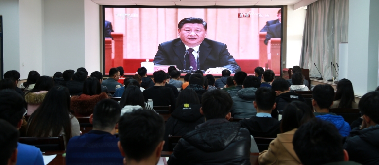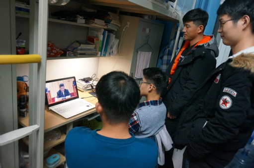 williamhill威廉希尔官网师生党员共同观看直播 郑健摄