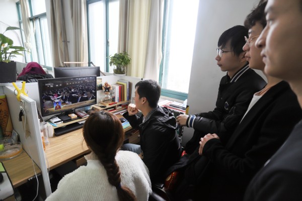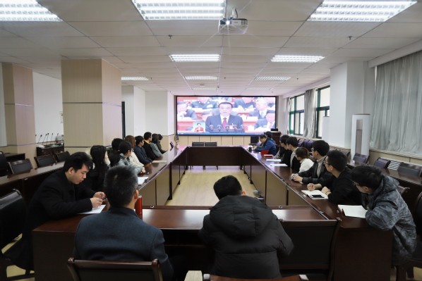 除了组织师生代表在会场集体学习外,学院还组织各党支部、各团支部、各员工组织自发开展学习观看活动,2019年两会期间,学院还将继续在广老员工中采取多种形式组织开展两会主题学习教育活动,从而大力弘扬家国情怀,教育引导员工坚定理想信念,明确责任和使命,努力为实现中华民族伟大复兴贡献自己的青春力量。