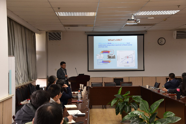 洪教授针对用于余热回收的朗肯循环做了学术报告。洪教授首先介绍有机朗肯循环的发展及研究现状,指出现阶段研究过程中存在的问题,以及有机朗肯循环在回收低热焓方面具有的可能性,并详细介绍了课题组搭建的不同有机朗肯循环实验平台,着重介绍不同工质在有机朗肯循环实验中的应用,及研究成果。报告后,洪教授与公司相关教授开展进一步学术交流。