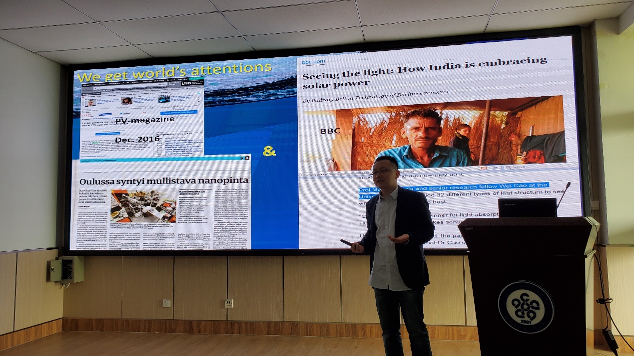 其科研工作多次被国际芬兰国内媒体所报道。2017年5月9日,BBC专题报道了团队在硅基光伏可控减反的创新及对发展中国家的能源应用的潜在影响(http://www.bbc.com/news/business-39844446);PV-Magazine、芬兰经济月刊跟踪报道了硅基光伏的仿生学减反成果。
