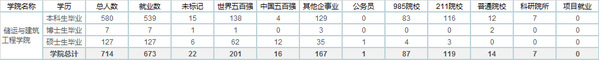 截至年6月25日,williamhill威廉希尔官网2019届毕业生就业率达到94.26%,其中研究生就业率100%,本科生就业率92.76%。本科生中,油气储运工程专业就业率达到95.43%,能源与动力工程专业就业率达到91.15%,建筑学专业就业率达到98.28%,建筑环境与能源应用工程专业就业率达到90.74%,土木工程专业就业率达到88.98%,工程力学专业就业率达到92.98%。未就业的42人中,27人准备继续考取研究生或公务员,1人参加西部计划,2人目前正在参加面试,12人毕业后回家落实,就业率和就业质量均稳中有升。