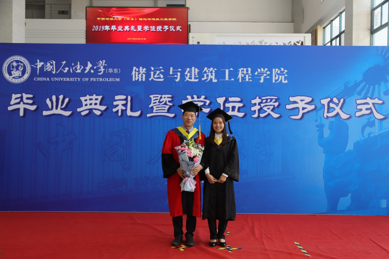 仪式主持人研究生辅导员张钦首先代表学院为全体毕业生送上最真诚的祝福,并对无私支持毕业生的亲人们、悉心指导的老师们、朝夕陪伴的同学们表示诚挚的感谢,随后汇报了2019届毕业生所取得的成绩。学院共有2019届毕业生716人,共有134名研究生毕业生、576名本科毕业生顺利完成学业获得学位。初次就业率达到94.26%,本科生的就业率达92.78%,博士、硕士研究生就业率均为100%;39名同学出国留学;2015级本科生高度重视学风建设,依托“员工共进成长团队”的管理模式,促进员工自我管理、自我教育、自我服务,通过党建引领风气,带动年级各项工作争先创优,多个班级获评学校优良学风班,土木1503班获评学校优良学风标兵班,大学四年实现考试“零作弊”,扎实的学风在全校各教学院部中享有较高声誉。良好的氛围给个人成长提供了更多的机会和平台,涌现出学校十老员工标兵黄修淞,优秀党员范丽欣等先进个人。硕士毕业生、董事长奖、王涛英才奖学金获得者杨兆铭代表全校研究生毕业生在毕业典礼上发言。随后在热烈的掌声中,李玉星教授为在场毕业生依次授予学位。最后,毕业生代表为李玉星教授献上鲜花表示感谢。