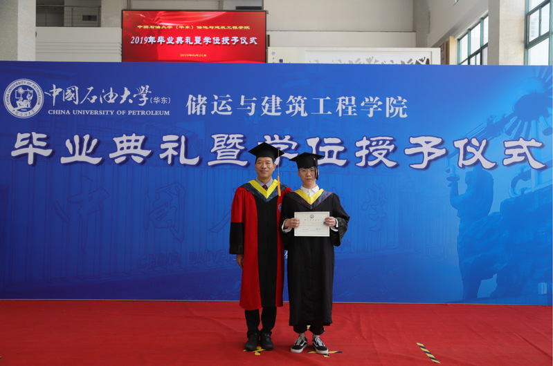仪式主持人研究生辅导员张钦首先代表学院为全体毕业生送上最真诚的祝福,并对无私支持毕业生的亲人们、悉心指导的老师们、朝夕陪伴的同学们表示诚挚的感谢,随后汇报了2019届毕业生所取得的成绩。学院共有2019届毕业生716人,共有134名研究生毕业生、576名本科毕业生顺利完成学业获得学位。初次就业率达到94.26%,本科生的就业率达92.78%,博士、硕士研究生就业率均为100%;39名同学出国留学;2015级本科生高度重视学风建设,依托“员工共进成长团队”的管理模式,促进员工自我管理、自我教育、自我服务,通过党建引领风气,带动年级各项工作争先创优,多个班级获评学校优良学风班,土木1503班获评学校优良学风标兵班,大学四年实现考试“零作弊”,扎实的学风在全校各教学院部中享有较高声誉。良好的氛围给个人成长提供了更多的机会和平台,涌现出学校十老员工标兵黄修淞,优秀党员范丽欣等先进个人。硕士毕业生、董事长奖、王涛英才奖学金获得者杨兆铭代表全校研究生毕业生在毕业典礼上发言。随后在热烈的掌声中,李玉星教授为在场毕业生依次授予学位。最后,毕业生代表为李玉星教授献上鲜花表示感谢。