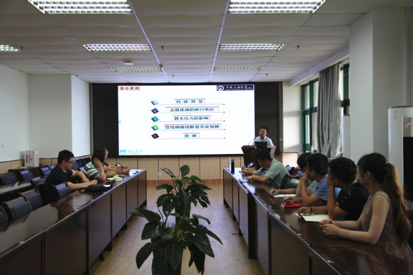 报告中,赵教授首先介绍了金属玻璃的缺口效应。随后,对管线钢的应力腐蚀断裂现象进行了详细解读。最后,赵教授论述了该课题未来的发展方向和合作可能。报告结束后,公司刘刚教授就管线钢完整性等问题与赵教授进行了交流,部分与会师生也就报告内容向赵教授提出疑问,并得到了赵教授热情、全面的解答。