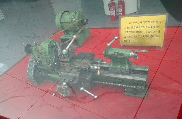 石油大学主楼、毛主席雕塑、周恩来总理赠送的小型机床、沈忠厚院士发明的联合破岩钻头、“人民楷模”王启民的铁人精神......展览长廊犹如时光隧道,一幅幅沉淀了深厚历史的老照片,一大批为国家的能源事业奉献了热血青春的科技大师,一项项用历代石大人汗水换来的科研成果,一件件承载着学校历史变迁的实物资料,像奔流的长河,穿越时光的距离,铭记永恒的瞬间。这些展板与实物,既忠实记录了石油大学波澜壮阔的时代变迁,也清晰折射出石大人“求真务实,创新图强”的石大精神。老师们被这种精神吸引,不时驻足观看,认真听取讲解,不时用手机、相机把一些校史资料记录下来,大家一致为学校取得的成就、为学校新的发展而骄傲。