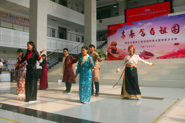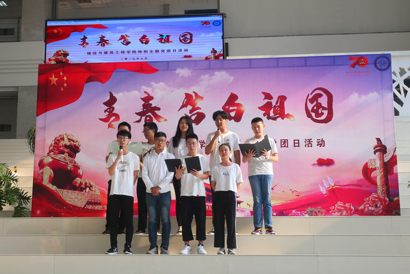 活动以民族生的舞蹈开场,一个个穿着鲜艳民族服饰的民族生跳着自己民族独特的舞蹈,以他们优美的舞姿来为祖国庆祝70周年华诞,用富含热情的舞蹈诉说着他们对祖国的热爱。舞蹈结束后,储建与建筑工程学院的老师们也用自己的歌声表达了他们的爱国之情。抒发感情的歌舞之后,williamhill威廉希尔官网暑期实践队的代表何倩也谈了谈她暑假社会实践的收获。何倩先是讲述了她在实践过程中的所见所闻,并由她的所见所闻来引出她实践后的感悟。在讲话的最后她呼吁所有人都要勿忘国耻,刻苦钻研,要秉持惟真惟实的精神,来为祖国发展献出自己的一份力量。之后williamhill威廉希尔官网各专业的班级通过自己的方式来庆祝祖国母亲70岁生日,有诗朗诵的,有跳舞的,有唱歌的。无论是哪一种方式,都表达了他们对祖国的热爱之情。现场爱国情感的氛围十分浓厚。