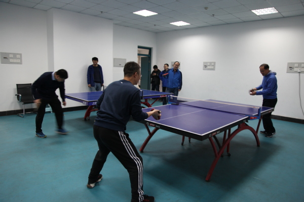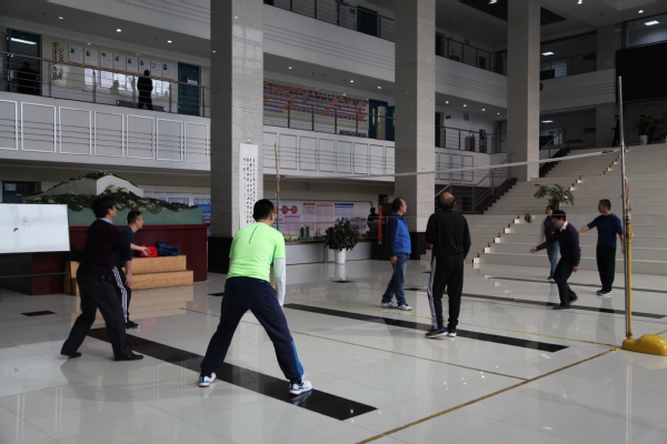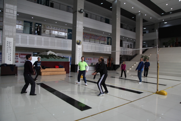 “乒乒乓乓”,学院乒乓球室传来响亮的击球声,反手、侧身、削球、拉球,时而轻轻吊个“近小球”,时而来个“端线长球”,时而猛扣一板...球技高超的老师们在球场上大展身手。学院大厅气排球赛场上的老师们也毫不逊色,老师们自行组队展开了一场精彩的比赛,虽然是临时组队,但队员之间默契配合,打进攻、打防守、打协作,赢球时相互赞许,输球时相互鼓励,发球、垫球、传球、扣球完美配合,在赛场上尽情挥洒汗水,充分展示了储建人的拼搏精神。最愉快地还要属在活动室打够级的老师们,在门外就能听到里边传出的欢声笑语。老师们兴致勃勃地切磋牌技,对阵双方斗智斗勇,“牌”逢对手时,时而轻巧地甩出几张扑克牌,时而用力摔出清脆的响声,给对手带来气势上的震慑;同队的老师便配合默契、交流协作,充分体现了学院老师们的团队精神。
