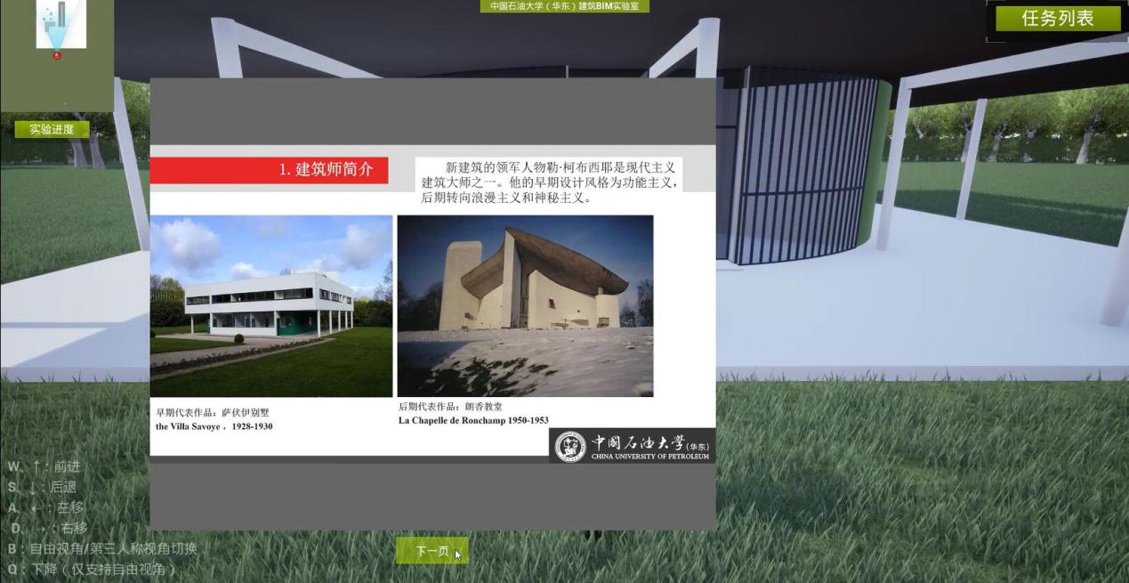 《建筑解析与空间体验虚拟仿真实验》于2019年9月申报并被山东省教育厅推荐参评国家级虚拟仿真实验项目,主要通过构建的三维虚拟仿真建筑,使员工在场景中对优秀建筑进行观察、对比、剖切、空间体验,研究建筑空间相互关系及特点。对提高空间思维能力、识图绘图教学效率和改善教学效果起到了重要作用,员工可以通过手机、电脑等终端设备身临其境完成规定的教学任务,在线形成实验报告,教师远程批改作业。