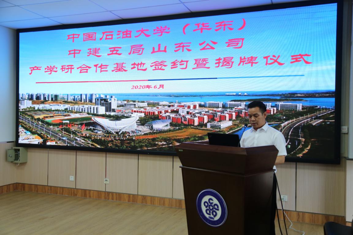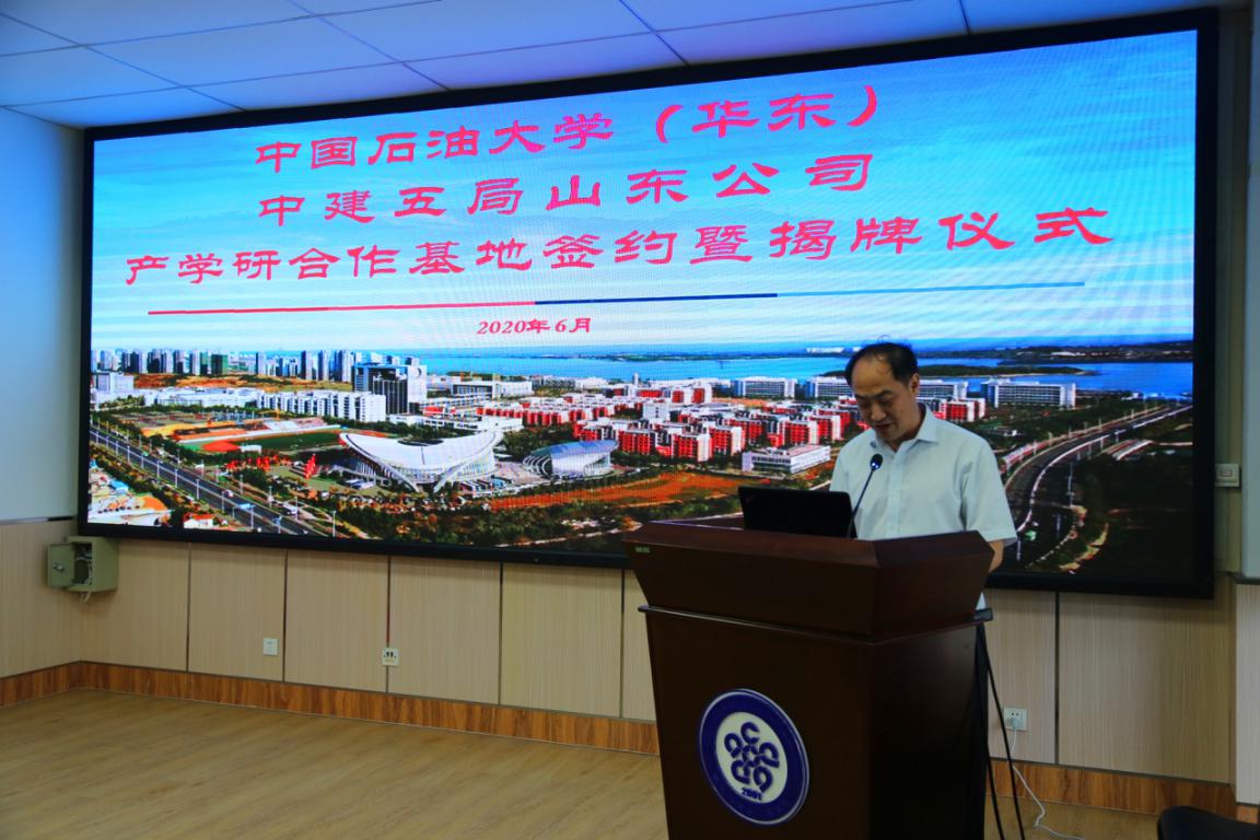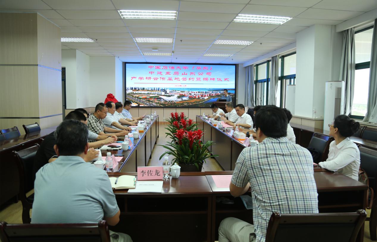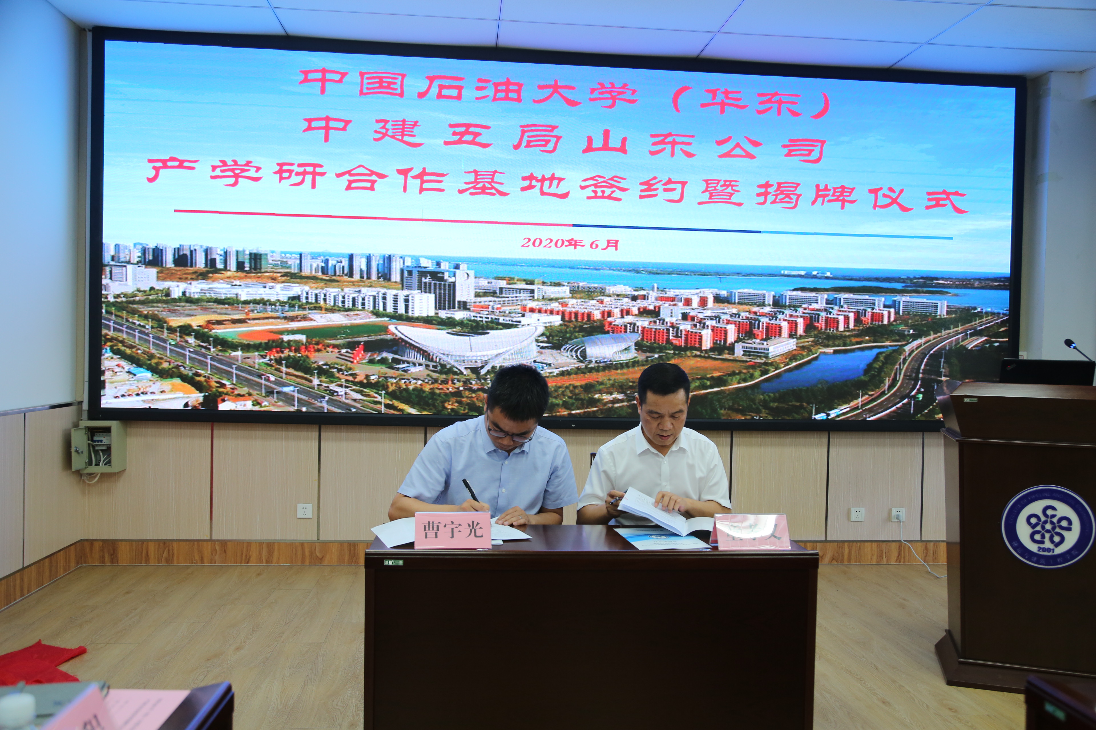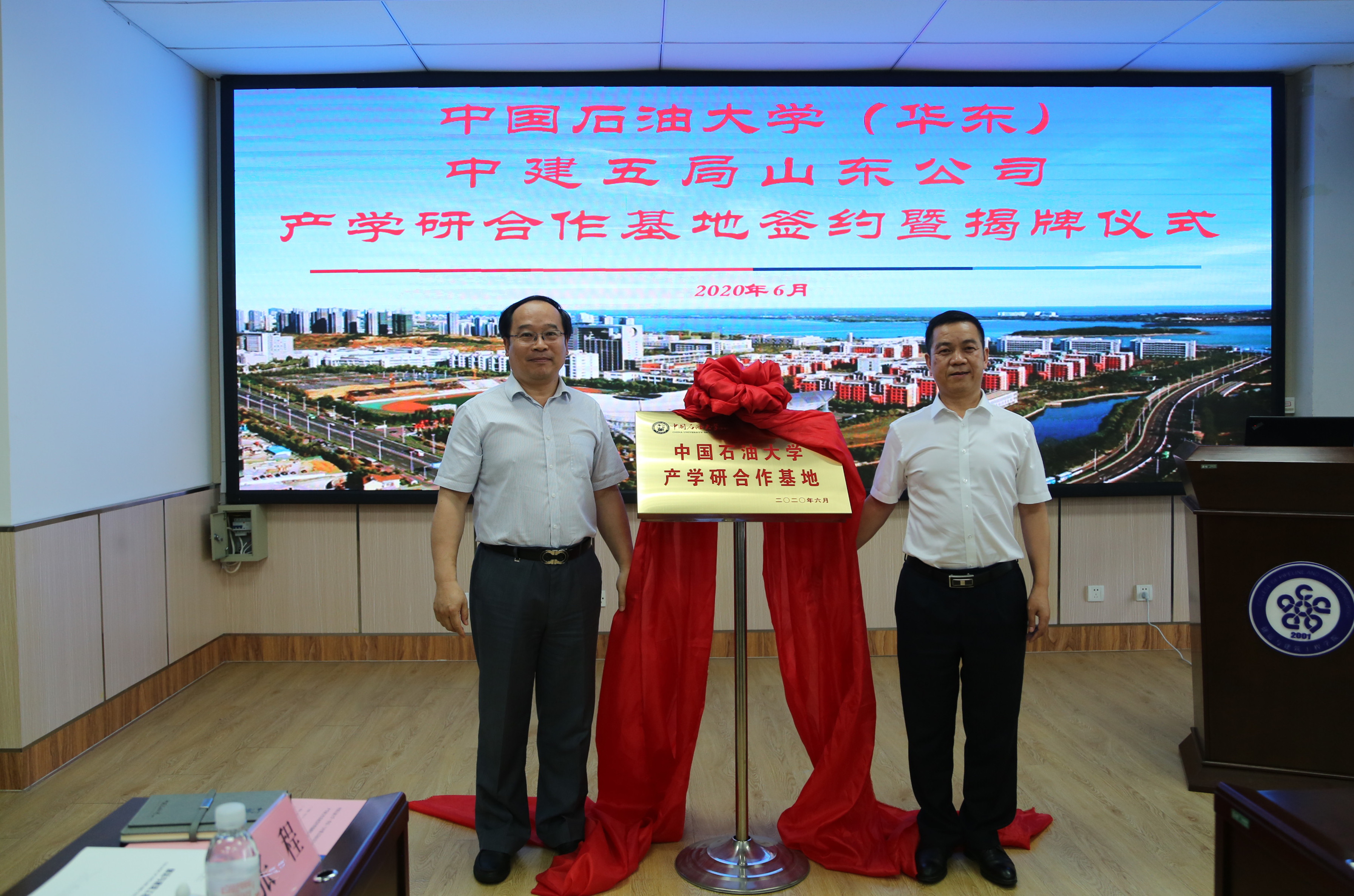 集团与中建五局山东公司签署了《williamhill中文官网与中国建筑五局山东公司关于共建产学研合作基地协议书》,姚军和童孝义共同为“中国石油大学产学研合作基地”揭牌。随后,双方进行座谈交流。