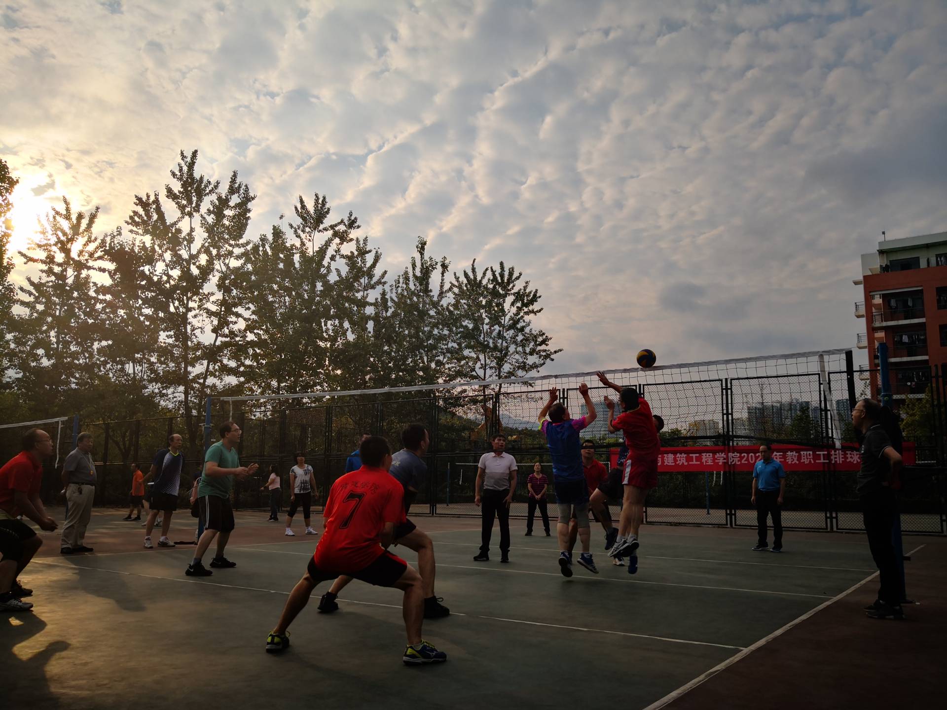 排球比赛是公司教职工体育健身活动的传统项目之一,深受教职工们的关注和喜爱。本次比赛自9月23日开始,共有五支代表队近50余人参加比赛,全院在校职工观看了比赛。比赛开始前,各工会小组认真筹备,精心组织,广泛动员,纷纷派出最佳阵容参赛。赛场上,队员们奋力拼搏,团结协作,相互鼓励,默契配合,奉献了一场场精彩比赛。