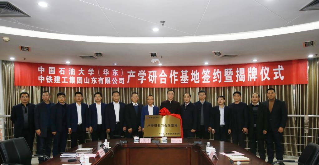 刘华东和安振山共同为产学研合作基地揭牌,中铁建工集团山东有限公司向学校捐赠中铁建工集团创新创业基金10万元。