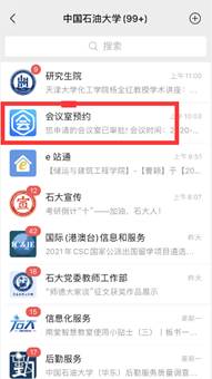 1. 打开 “williamhill中文官网微信企业号”,搜索“会议室预约”(仅对公司教职工开放,员工无法预约)。