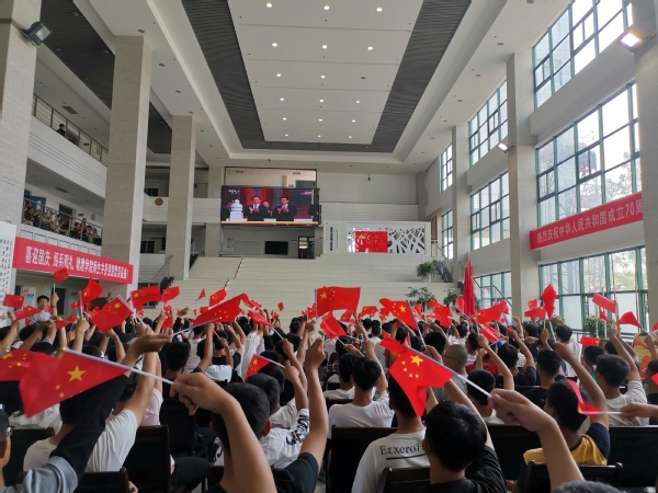 今年是中华人民共和国成立70周年。10月1日上午,庆祝新中国成立70周年阅兵式在首都天安门隆重举行,公司党委、团委组织在校师生代表在工科楼D座大厅观看了阅兵式电视直播。