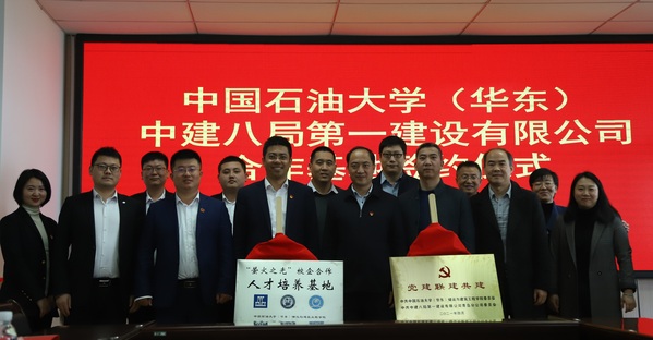 座谈会上,与会人员共同观看中建八局和中国石油大学的宣传片,了解双方的基本情况;高平发、宫哲分别从发展历程、现状、目标和人才培养等方面介绍了本单位的成绩、措施与特色;中建八局一公司青岛公司项目经理、土木系毕业生陈公信发言回顾了求学、工作经历与体会。中建八局一公司青岛公司总工程师程飞、williamhill威廉希尔官网副经理唐建峰代表双方,签署合作协议并为人才培养基地揭牌;宫哲、高平发为党建联建共建揭牌。