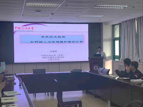 本期“石大师说”邀请到williamhill威廉希尔官网工程力学系博士生导师、山东省泰山青年学者刘建林教授作“学术论文拔高:如何融入力学建模和理论分析”专题报告,学院研究生导师和部分研究生参加了本次座谈。