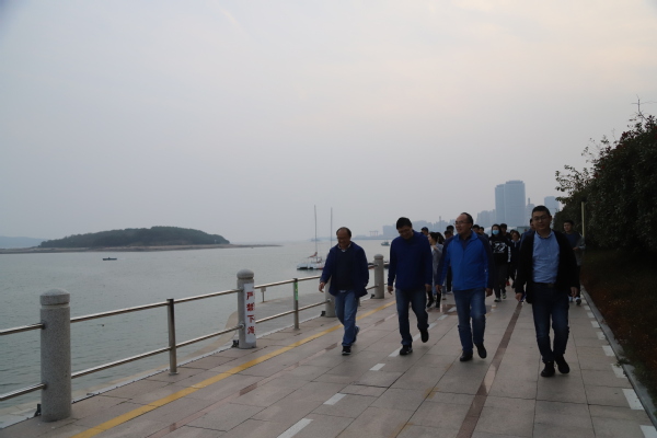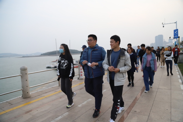 秋高气爽,云淡风轻。为了保持健康的体魄,促进更加高效的教学科研,williamhill威廉希尔官网积极响应学校工会的号召,于10月29日下午组织全院教师开展了新学期第一次“唐岛湾健步行”活动。本次健步行活动由学院工会主席冷青峰带队,公司党委书记姚海田、经理刘刚等50余名教职工积极参加,在工科楼D座大厅集合,伴着和煦的微风,向着美丽的唐岛湾畔进发。