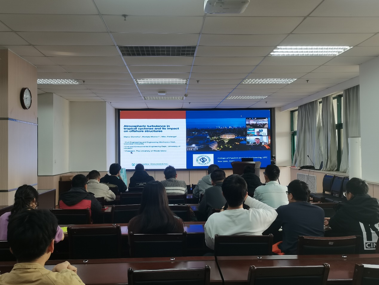 2021年11月17日,在科技部外国专家项目“油气储运学科创新引智(培育)基地”支持下,美国哥伦比亚大学环境流物理实验室主任Marco Giowanni Giometto助理教授受公司邀请,在线做题为“热带气旋中大气湍流对海上设施的影响”云端学术报告,报告会由刘翠伟副教授主持,公司师生听取报告并与Giometto教授就相关问题展开交流。