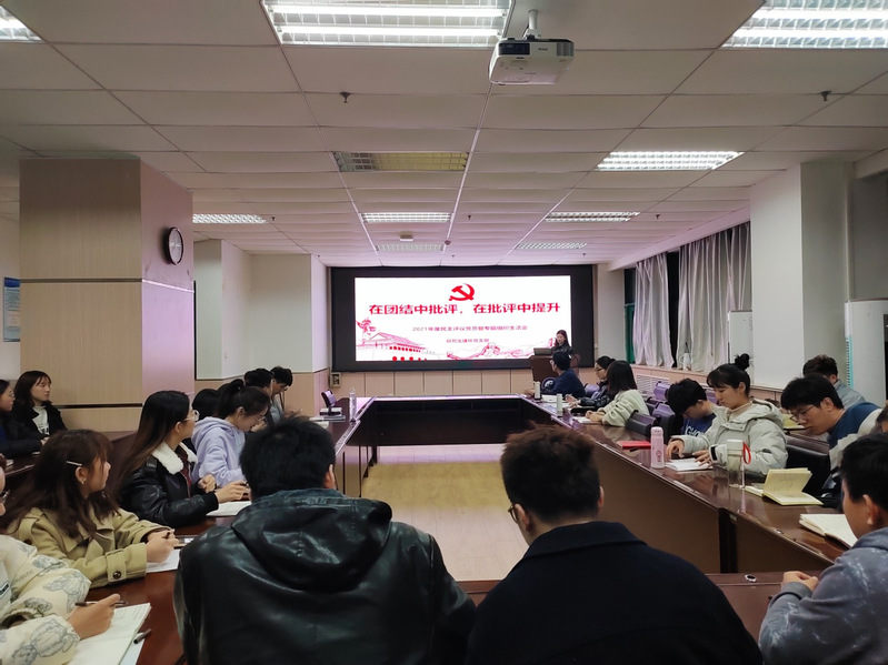 随后,全体党员进行批评与自我批评。在党员中普遍存在的问题是对于党史学习深度不够,对于学习强国的学习没有进行深入思考;部分党员存在纪律意识和责任意识较差的问题,组织观念不够强的问题。经过批评与自我批评,各位同志都对自己的工作和科研进行了反思,并表态今后会多加改正。