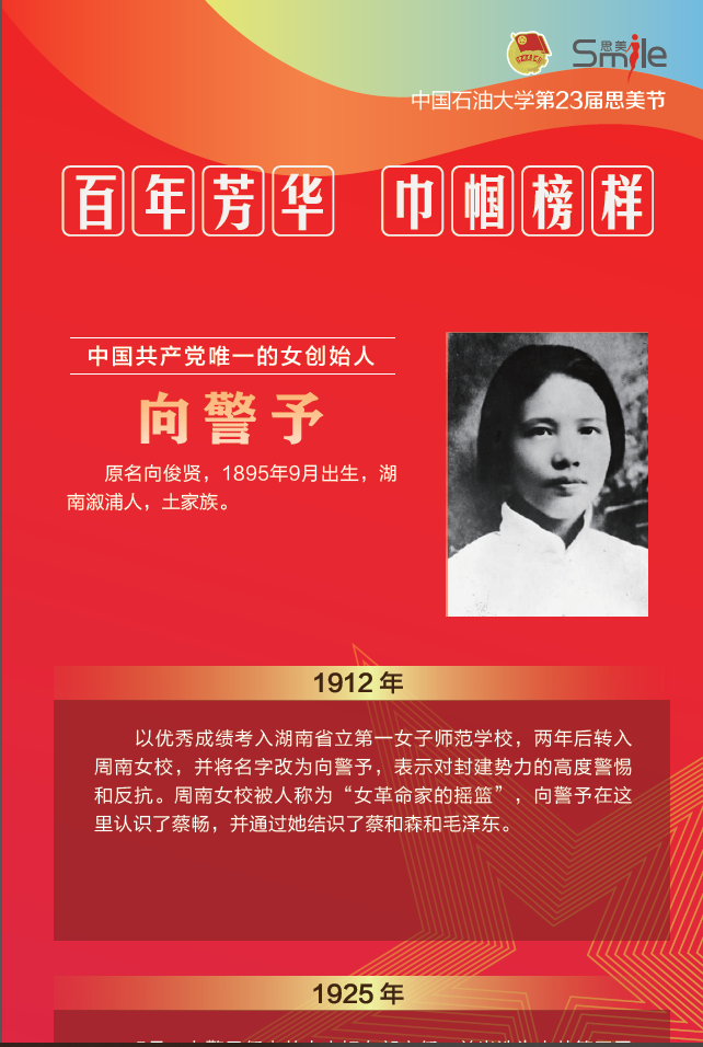 2022年是中国共产主义青年团建团100周年,在中国共产党的带领下,无数英勇无畏、顽强拼搏的中国女性投身革命、建设和改革,为实现民族独立、人民解放和国家富强、人民幸福贡献着自己的巾帼力量。在第二十三届思美节到来之际,团委举办《百年芳华 巾帼榜样》人物展览,通过重温37位杰出女性的光辉事迹,致敬她们坚守信念、无私奉献的高尚品格和崇高精神,从而激发新时代女老员工的巾帼之志,继续书写“巾帼不让须眉”的时代华章。