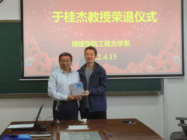 4月15日,工程力学系在工科D719为于桂杰教授举办荣退仪式。活动由工程力学系党支部书记黄小光主持。
