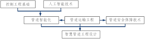 本专业核心课程有6门,分别是控制工程基础,人工智能技术,管道运输工程,管道安全保障技术,管道智能化,智慧管道工程设计。控制工程基础和人工智能技术是进行智慧管道工程设计和管理的基础课,由自动化专业的老师主讲,管道运输工程,管道安全保障技术,管道智能化专业性比较强,由油气储运工程专业老师主讲。智慧管道工程设计是课程设计类的实践课程,注重员工综合设计能力的培养。除了人工智能技术之外,其余五门课程均是新课程,体现了“智慧+管道”复合型人才的培养理念和“工艺与工程并重、强化信息与控制”的课程体系。课程拓扑关系如图1所示。