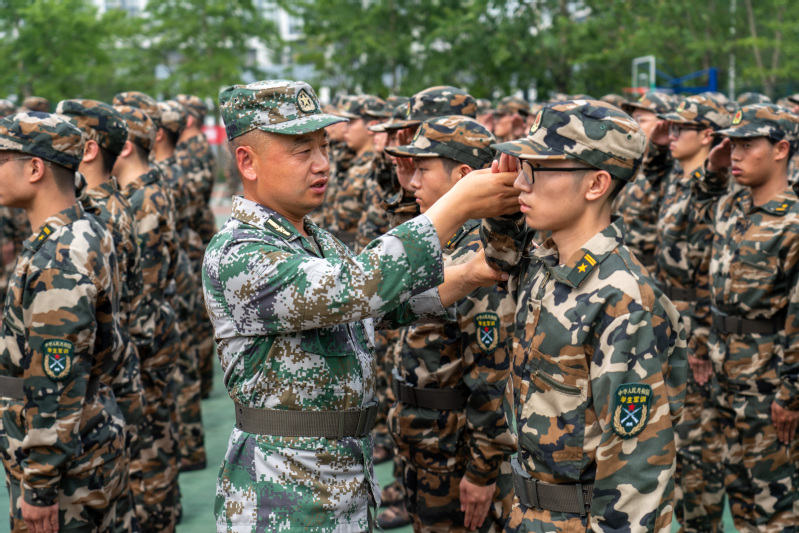 下午训练,先进行了军姿练习,巩固上午学习成果。此后,分步骤训练齐步分节动作和行进与立定,从一令一动到一令三动再到一令五动,在教官严格的训练和耐心的指导下,大部分同学都能够自主完成动作。休息时间,教官安排同学进行才艺表演,赢得大家阵阵喝彩,为劳累的一天增添了一抹亮色。