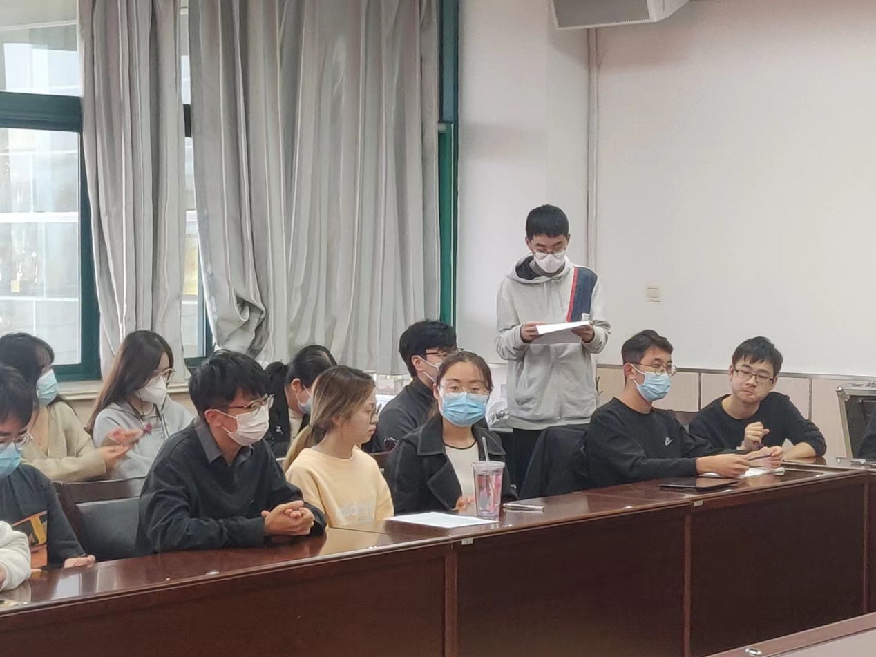 李莹同志首先从二十大大会主题切入,她强调作为新时代青年党员,每位同志都应该高举中国特色社会主义伟大旗帜,全面贯彻习近平新时代中国特色社会主义思想,弘扬伟大建党精神,自信自强,守正创新,踔厉奋发、勇毅前行,为全面建设社会主义现代化国家、全面推进中华民族伟大复兴而团结奋斗。随后,李莹带领团员们学习观看了十九届六中全会主要会议内容:二十大报告全面总结过去五年的工作和新时代十年的伟大变革,开辟马克思主义中国化时代化新境界,总结了新时代新征程中国共产党的使命任务,提出了新时代中国式现代化,为未来发展描绘了美好蓝图,令人心驰神往。随后研究生代表高明礼、孙文秀、丁敬琪发表了自己学习二十大的感悟。他们表示,在研读过习近平总书记的报告后,深感这一报告字字珠玑,每一句都可仔细解读。二十大报告肯定了成绩,交出了满意的答卷,同时也指出我们存在的问题和现阶段的主要矛盾,更提出了我们的应对之策。在报告最后,更是提出了青年强,则国家强;作为年轻人,我们坚信,只要坚持党中央的领导,我们定会突破难关,实现民族的伟大复兴!