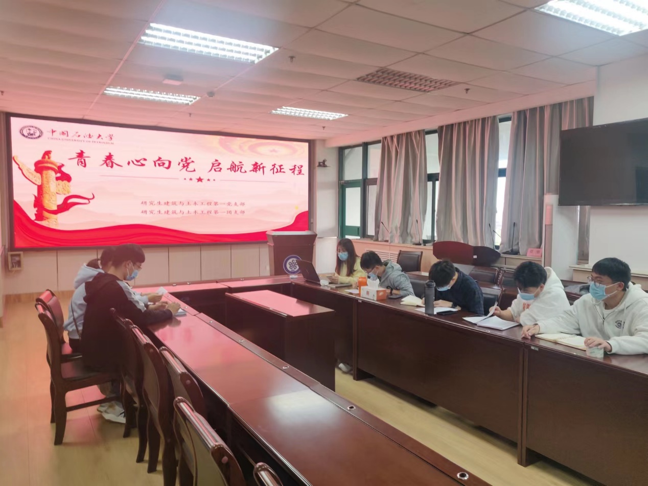 为深入学习宣传贯彻党的二十大精神,引领和激励支部成员听党话、跟党走,以更加昂扬的姿态和饱满的激情奋进新征程、建功新时代,研究生建筑与土木工程第一党支部及团支部于2022年10月27日在工科楼D345开展了“青春心向党,启航新征程”主题活动。党支部书记陶子卓及团支部副书记李莹发表讲话,带领团员青年通过研读原文、视频学习、等多种形式开展学习,在支部内持续掀起深入学习贯彻党的二十大精神的热潮。