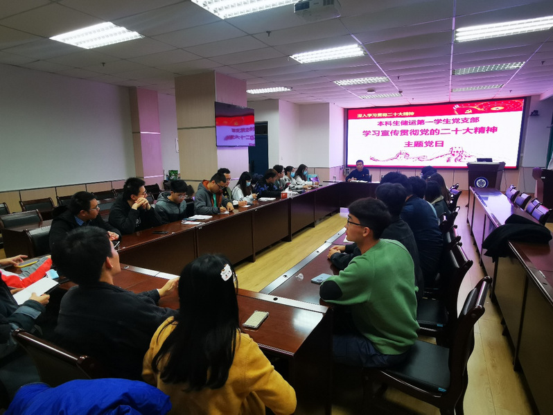会议伊始,王加胜结合学校、公司党委印发的文件,对深入学习宣传贯彻党的二十大精神的学习背景进行了简要介绍。随后,王加胜同志带领全体党员学习党的二十大精神,并结合党的二十大报告中提出的十年来对党和人民事业具有重大现实意义和深远历史意义的三件大事、过去五年的工作和新时代十年的伟大变革、如何继续推进实践基础上的理论创新、新时代新征程中国共产党的中心任务、办好人民满意的教育、坚持“五个必由之路”等方面全面解读学习党的二十大报告。随后王加胜结合个人生活以及辅导员工作分享了自己的学习经验,表示党的二十大对自己的生活和工作具有很大的鼓舞作用,并激励全体党员应当具有完成中心任务的责任和使命,认真学习贯彻党的二十大精神,在学习的基础上践行党的二十大精神,规划个人未来的目标,不断学习,以更高的责任感和使命感投身到专业研究与行业建设中去。