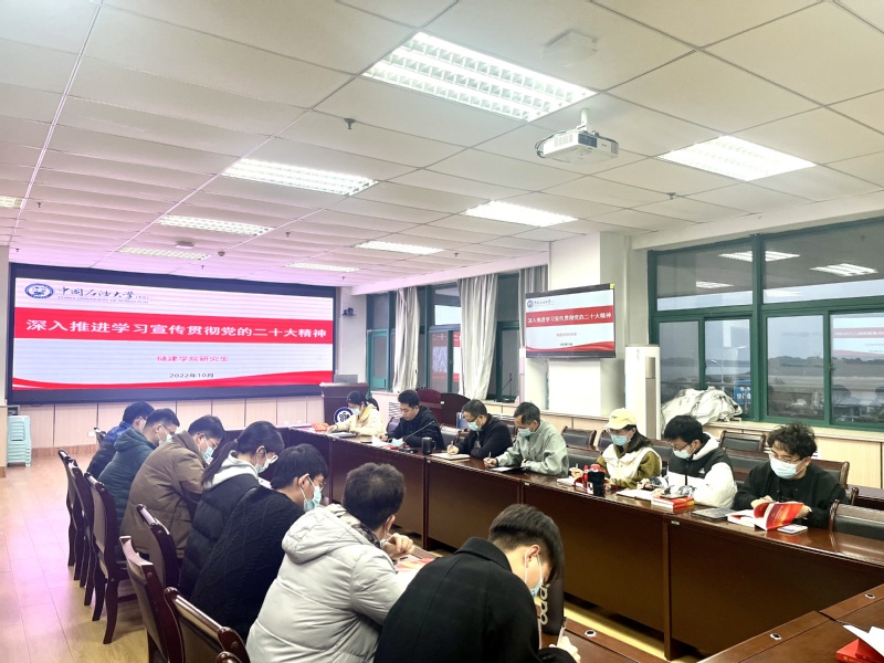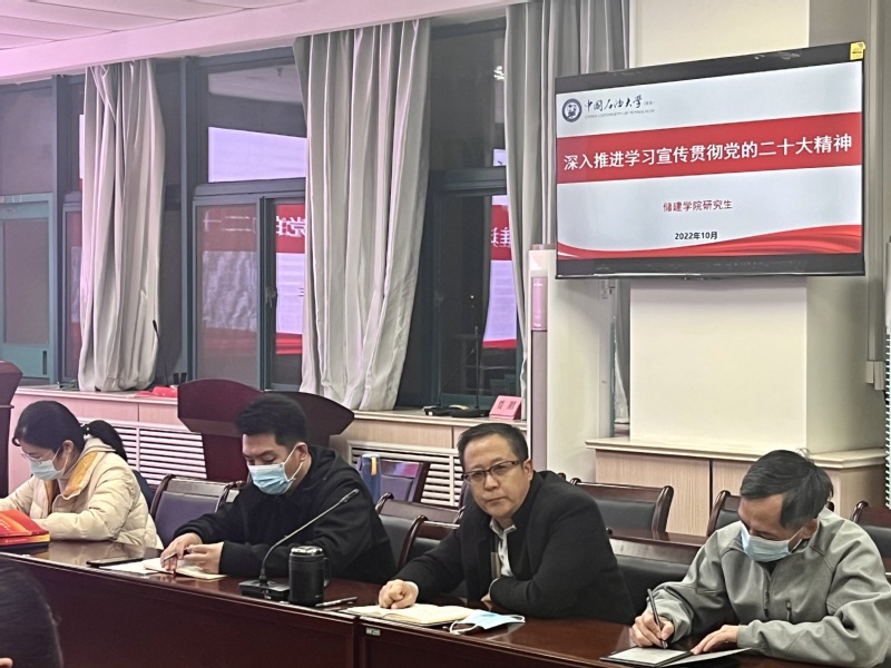 会上,党委委员李峰弼传达了学院制定的关于深入学习宣传贯彻党的二十大精神的实施方案。方案要求,各党支部要充分认识党的二十大的重大意义,准确把握党的二十大精神的核心要义,准确把握丰富内涵、精神实质和实践要求,切实把党的二十大精神转化为思想共识和行动自觉。李峰弼解读了“九个深刻领会”的明确要求,既要整体把握、全面系统,又要突出重点,抓住关键,要在支部中、研究生中迅速掀起学习贯彻党的二十大精神的热潮。