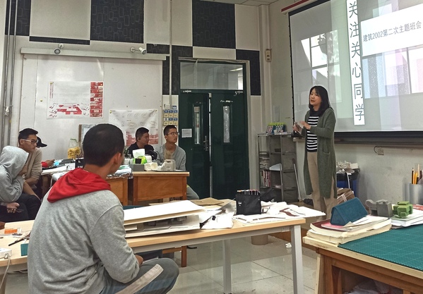 建筑2002班主任杨婷婷在与班级同学交流座谈