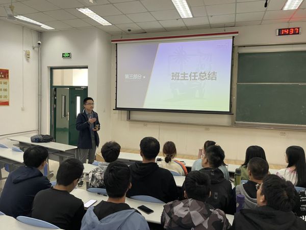 土木1902班主任杨文东在班会现场