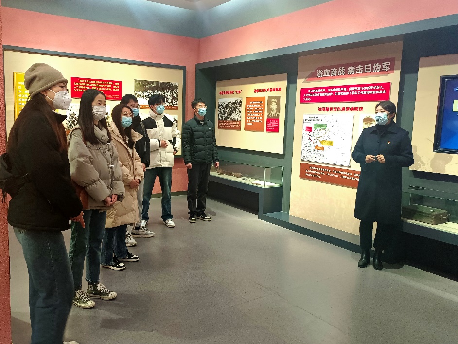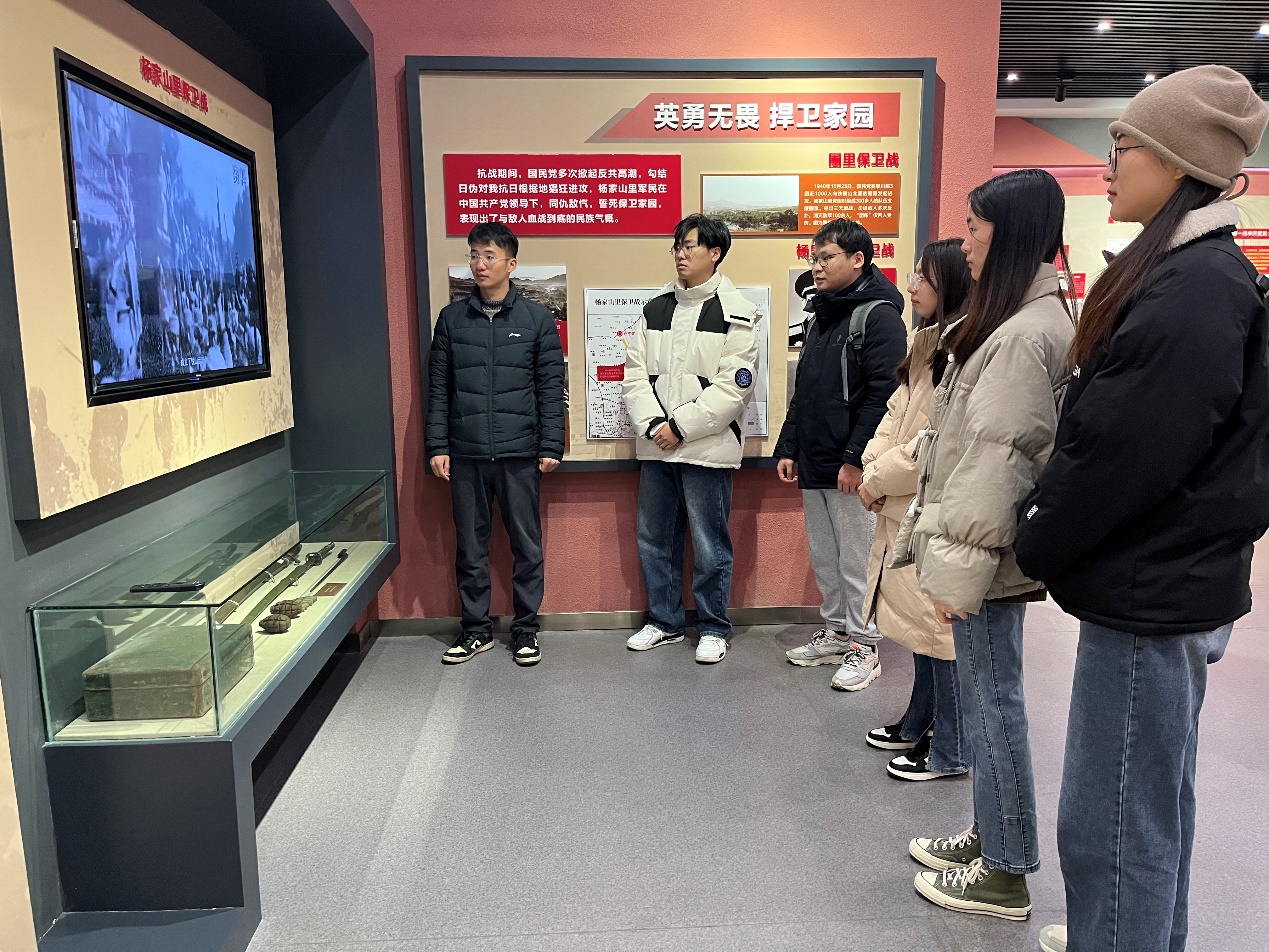 在讲解员的带领下,大家参观了杨家山里抗日战争展厅,展厅分“日军铁蹄、践踏国土”“中流砥柱、使命担当”“百折不挠、浴血奋战”“红色堡垒、铜墙铁壁”“红色基因、代代传承”五个部分。瞻仰了革命先辈们抗日武装斗争的珍贵历史照片、实物,观看了杨家山里人民英勇抗争的历史影像,聆听了先烈们宁死不屈的抗日故事。展厅里的文物和照片,鲜活地展现革命先辈的奋斗历程,大家无不被每件历史实物及革命先辈英勇事迹所感染,更感到肩上沉甸甸的责任和使命。