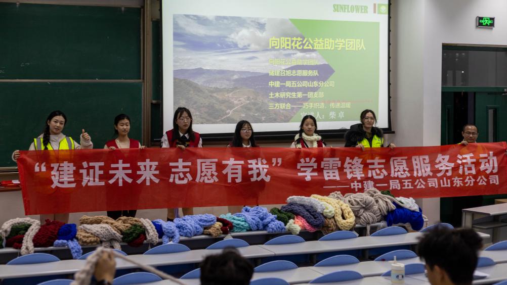 为进一步学习和弘扬雷锋精神,积极响应志愿服务,向阳花公益助学组织和召旭服务队达成合作,联合土木研究生第一团支部和中建一局开展了“巧手织造,传递温暖”的织围巾活动。用以捐赠贫困儿童、留守儿童,关注农村困难儿童,倡导绿色环保的理念,为农村儿童送上一份温暖。