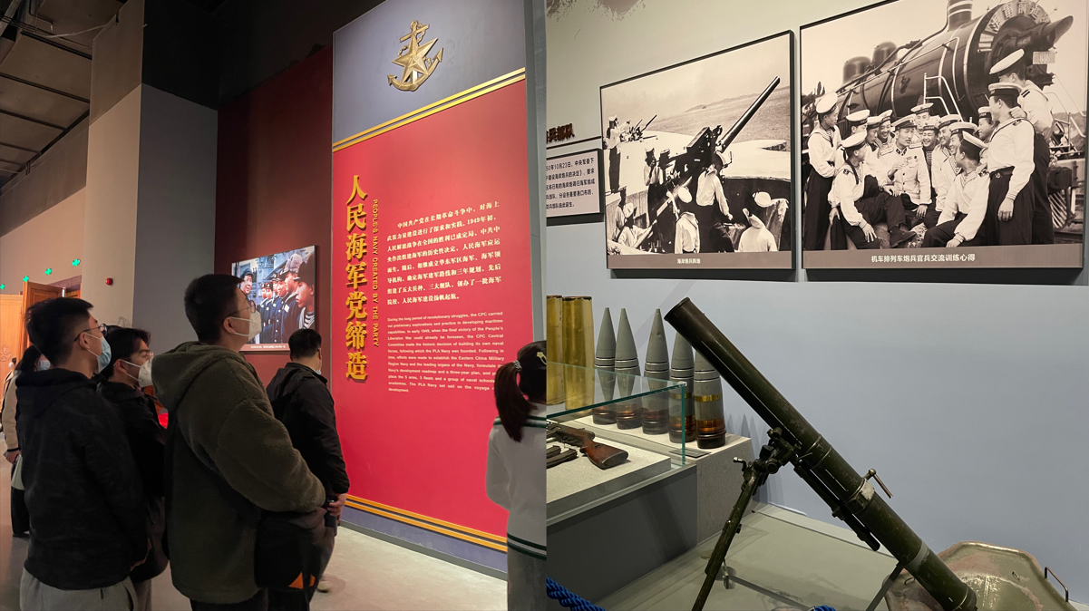 在一幅幅珍贵的照片和一件件弥漫着历史气息的文物前,党员们驻足凝思,体悟经略海洋、建强海军的伟大韬略,探寻人民海军白手起家、劈波斩浪的历史征程,在党的坚强领导下,人民海军在炮火中诞生、战斗中成长、发展中壮大;一路劈波斩浪,纵横万里海疆,驰骋远海大洋,正朝着建成世界一流海军的目标阔步前进。