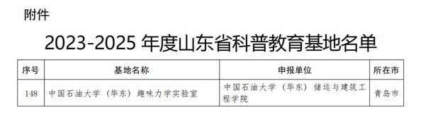 自2023-2025年度山东省科普教育基地认定工作启动后,由学校科学技术协会推荐,经过山东省科学技术协会评审、公示等程序,最终命名163个单位。