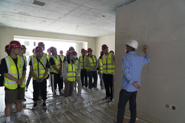 师生一行参观了公司青岛融创(A-6-1)项目施工现场,项目经理任海阔带领师生参观房屋标准层及地下室结构,深入浅出地为大家讲解该项目的工艺技术和创新技术,土木2003班唐燕玲同学表示:“亲临项目感到十分震撼,中建一局三公司工程技术能力强,项目工程师们热心地答疑解惑,使我对工程项目有了更加直观和全面的认知,这对未来就业选择指明了方向。”