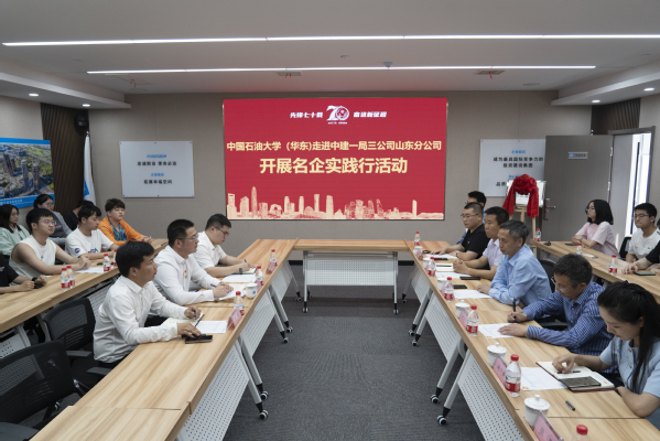 师生一行首先来到公司机关驻地,观看了中建一局三公司企业宣传片,中建一局三公司山东分公司党总支专职副书记刘佳龙介绍了公司作为“共和国长子”“新中国第一支建筑国家队”中建一局全资子企业70年来的恢弘历程,周辉介绍了学校及学院建设发展历程和员工教育培养情况,双方围绕党建联建、校企合作、人才供求、就业方向等话题进行互动交流。