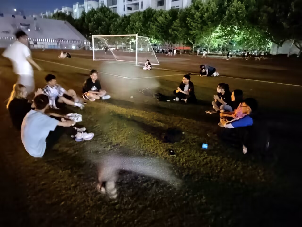 最后一个环节是丢手绢。开始时,同学们围一个大圆圈,选一个人拿着手绢,丢手绢的人沿着圆圈外行走,丢手绢的人不知不觉地将手绢丢在其中一人的身后。被丢了手绢的同学发现自己身后的手绢,迅速起身追逐丢手绢的人,丢手绢的人沿着圆圈奔跑,跑到自己的位置时坐下,这项有趣的室外活动有效的改善了同学间的人际关系,为同学解压,锻炼了同学们的应急能力。