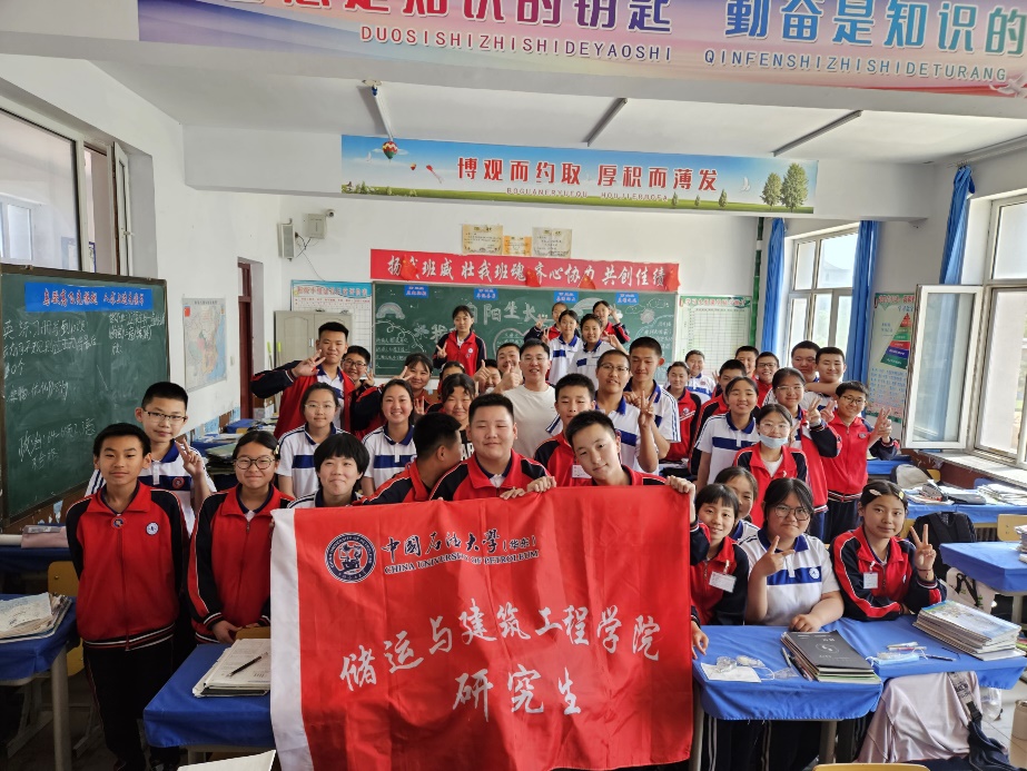 会谈结束后,研究生建环党支部代表秦泊雨同志前往初一(6)班给甘四中孩子们上了一堂生动有趣的思想政治课,解答了孩子们关于学习方面的疑问以及研究生生活方面的好奇,并将研究生建环党支部的明信片祝福分发到每一个孩子手中。在关注学习的同时,同样关注孩子们的身体健康,研究生代表王一凡、许义飞同志利用捐赠的篮球等文体活动物资与初一(4)班的孩子们上了一堂趣味体育活动课。“看到孩子们在球场上快乐的笑容,仿佛回到了自己的初中时光”。