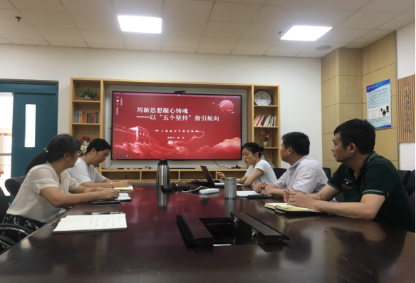 为持续推进学习贯彻习近平新时代中国特色社会主义思想主题教育,以主题教育为着力点和助推器,持之以恒贯彻落实“五个坚持”,推动主题教育进一步走深走实,7月17日,公司机关党支部书记董青结合学习感悟,以“用新思想凝心铸魂——以’五个坚持’指引航向”为题,为学院机关党支部党员讲授专题党课。