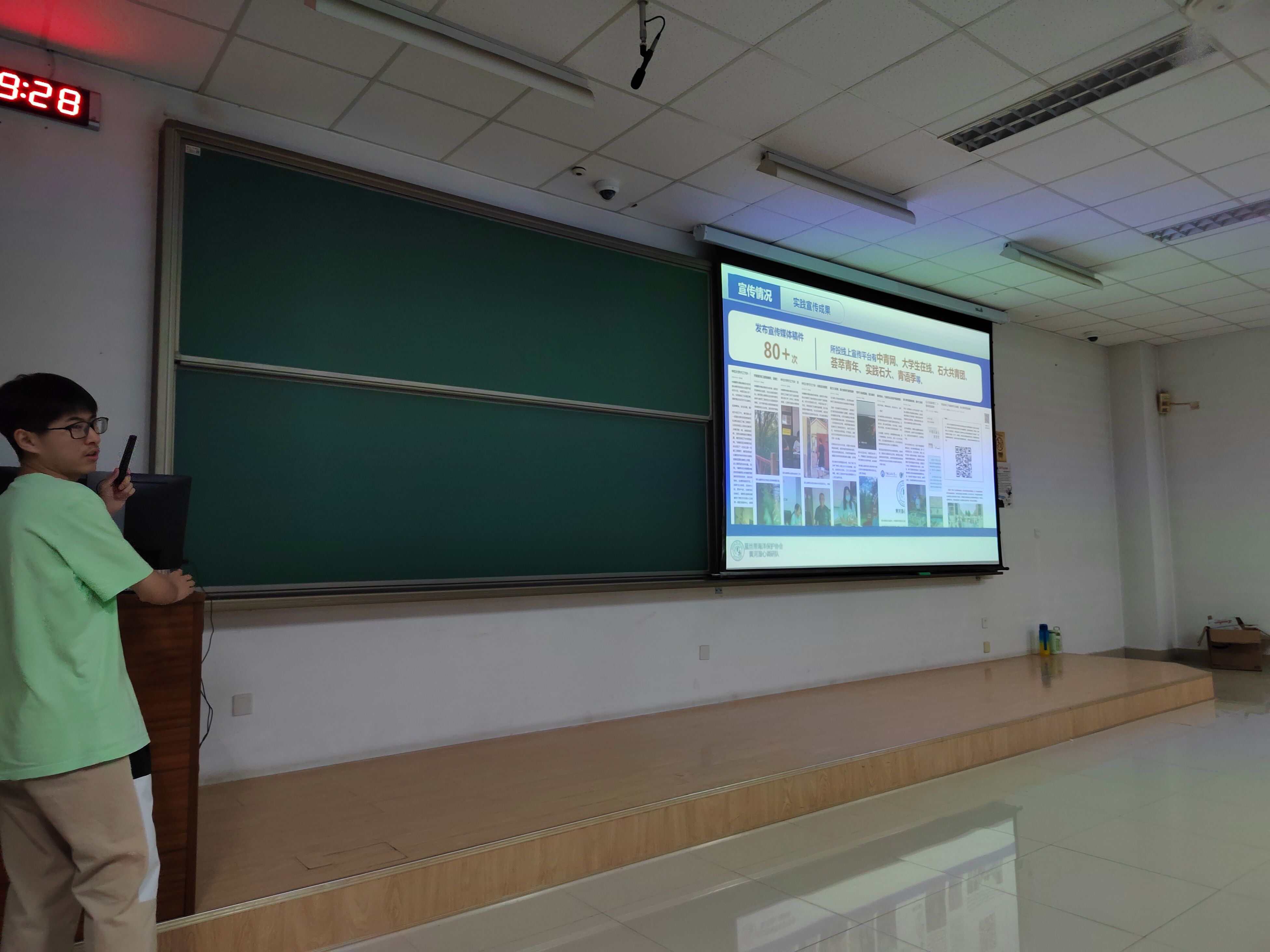 孙晓越从新闻类别讲起,介绍新闻写作的模式和规范,并列举说明主要宣传平台的投稿方式,强调新闻宣传的注意事项,切实提高了各实践队新闻宣传的积极性,为其提供了清晰明确的投稿流程。肖朋磊介绍了新闻投稿中摄影照片的注意点,同时分享了自身的一些摄影技巧,切实提高各实践队的摄影水平。