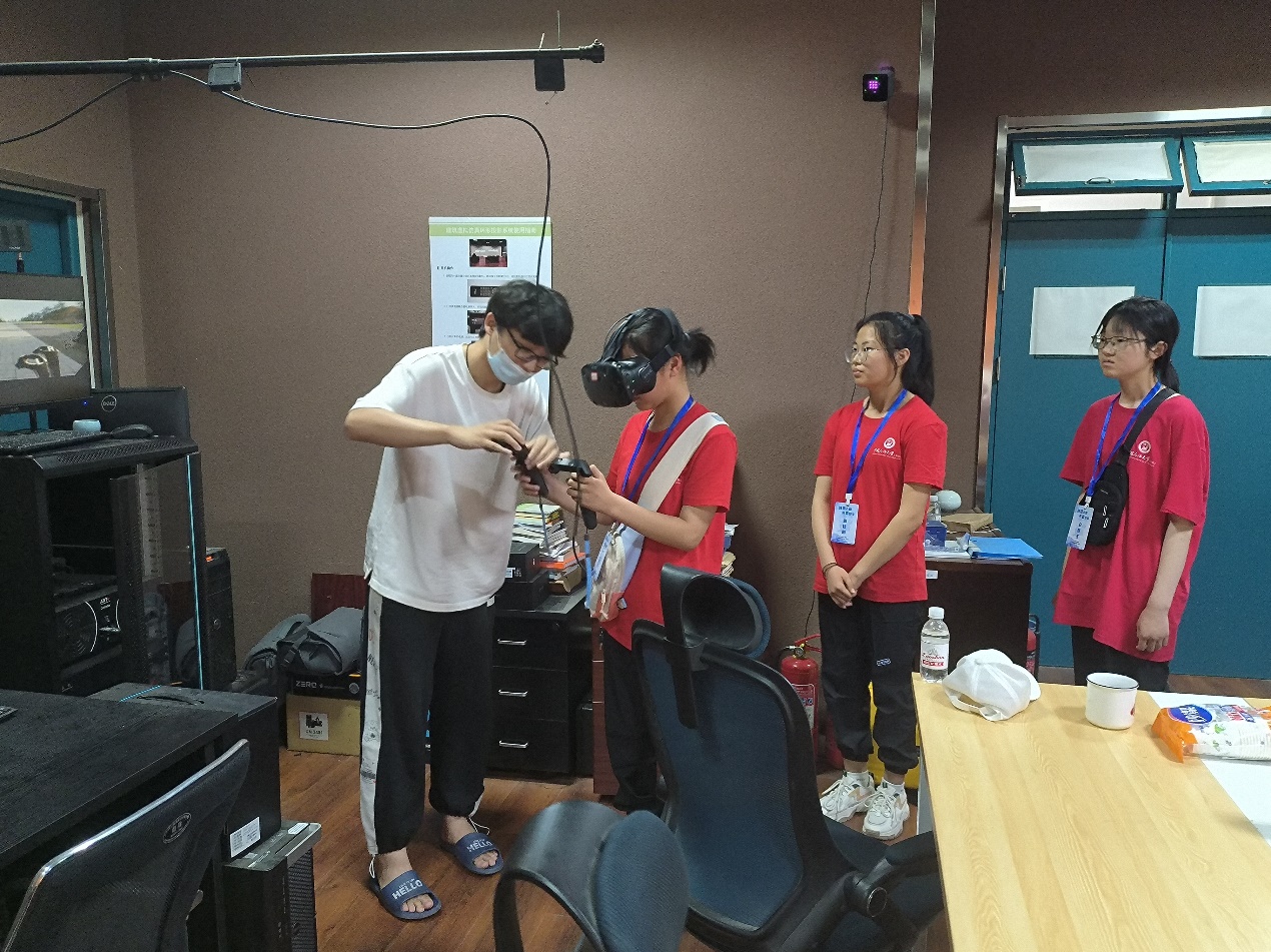 座谈会议结束,朱淑芳、王惠带领来访师生参观了williamhill威廉希尔官网建筑虚拟现实教学实验室,实验室负责人李佐龙老师对来自远方的客人表示欢迎,随后详细介绍了为五官村做的地标、村碑、站间等建筑物的设计理念,表示希望在五官村后续的发展建设中,助力形成具有当地特色的标志性建筑。后采用简洁明了的语言为三名中员工普及建筑学知识,建筑的美学,勉励员工勤奋好学,将来接触更加广阔的天地。最后,让三位中员工体验williamhill威廉希尔官网虚拟场景,身临其境,感受建筑与科技的融合。