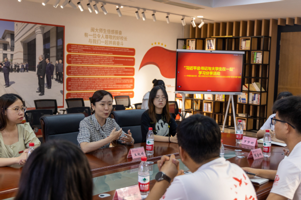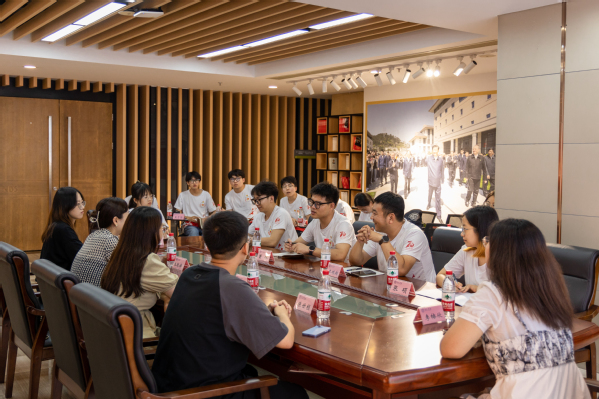 在闽江公司党员学习室,实践队与闽江学院团委书记王艳婷及闽江学院团委员工干部开展了以“习近平总书记与老员工在一起”为主题的座谈会。座谈会上,双方介绍了各自学校团委目前的发展情况,并围绕落实立德树人根本任务、提升青马工程培养质效、强化传媒中心运营管理等问题展开深入探讨。