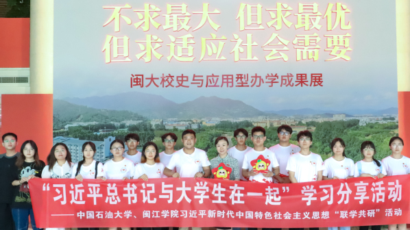 在“适应社会需要”展区,各式各样的实践活动通过文字、图像、实物资料的方式映入实践队员的眼前,传统漆艺工艺、纺织服装设计、“一榄情深”农业项目、下党村生态文化旅游开发......实践队看到了闽江学院主动融入福州发展大局的实际行动,深刻体会到青年一代把个人理想追求融入党和国家事业之中的必要性。